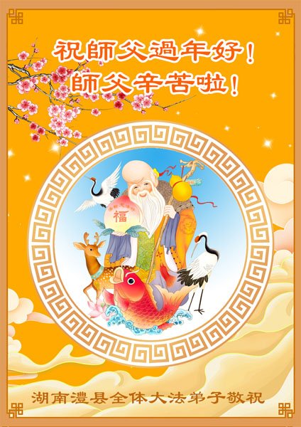 弟子全家叩谢师尊!感恩师尊慈悲救度!弟子一定完成自己的历史使命,做好三件事,多救众生。 湖南省常德市澧县全体大法弟子恭祝师尊过年好!