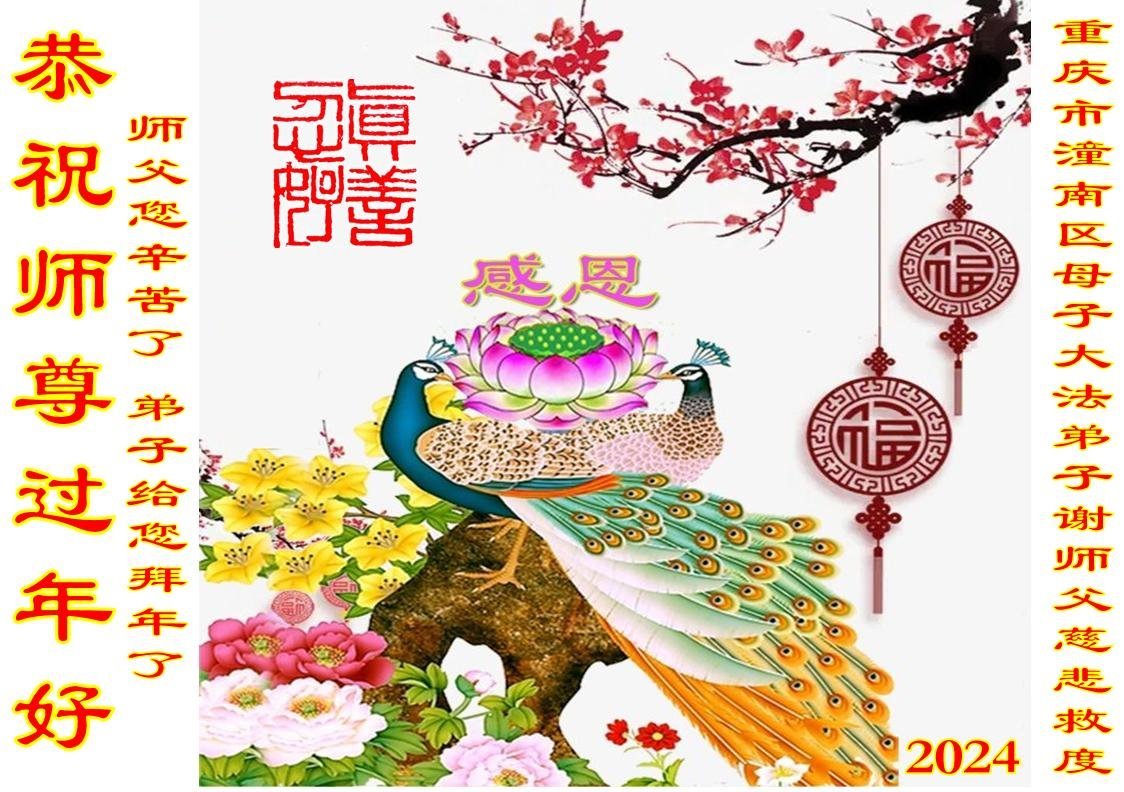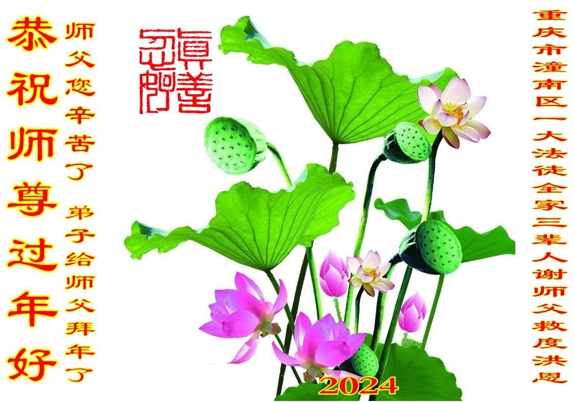 【明慧网二零二四年二月九日】 重庆市北碚区一家三代大法弟子恭祝慈悲伟大的师父新年快乐!