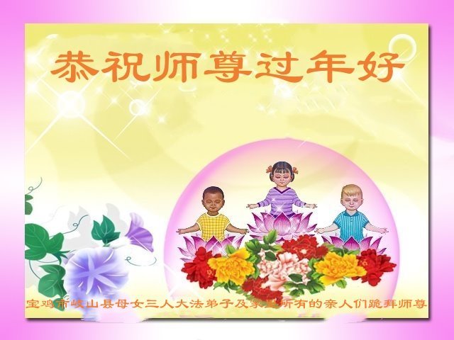陕西省宝鸡市岐山县母女三人大法弟子及家里所有亲人恭祝师尊过年好!