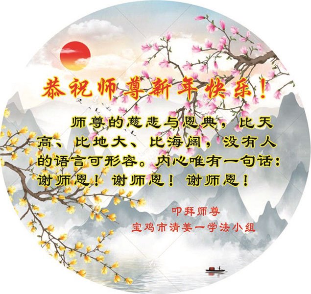 陕西省宝鸡清姜一学法小组大法弟子恭祝师尊新年快乐!