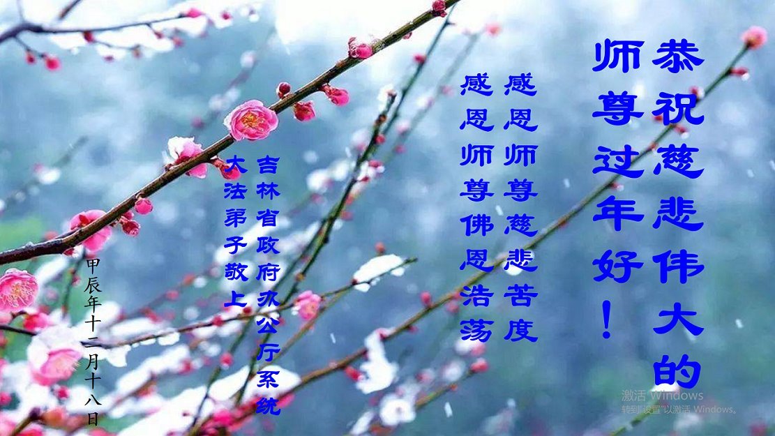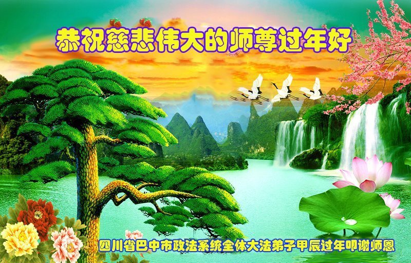 | 【明慧网二零二四年二月九日】(明慧网记者综合报道)二零二四年中国传统新年到来之际,在中国公、检、法、司、军队、政法系统、武警部队、政府部门等行业工作的法轮大法弟子,向慈悲伟大的师尊恭贺新年好! 江苏南京公安系统大法弟子在贺词中说:“弟子们感恩师尊的救度之恩!在修炼的这条路上,弟子们度过的每一关每一难都离不开师父的慈悲保护。在今后的修炼中,多学法实修自己,承担起大法赋予的使命,救更多的人,圆满跟师父回家。” 重庆市国防系统大法弟子恭祝慈悲伟大的师尊新年快乐!叩拜谢师恩!