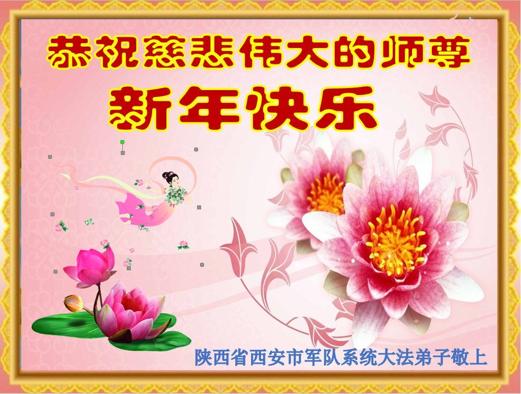 在新年之际,我代表全家人恭祝师尊新年好! 一定做好师父安排的一切事,弟子一直在全力做好大法弟子的三件事,请师父放心! 中国大陆军队全体大法弟子恭祝慈悲伟大的师父新年快乐!