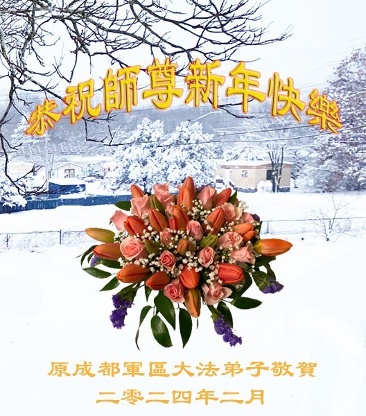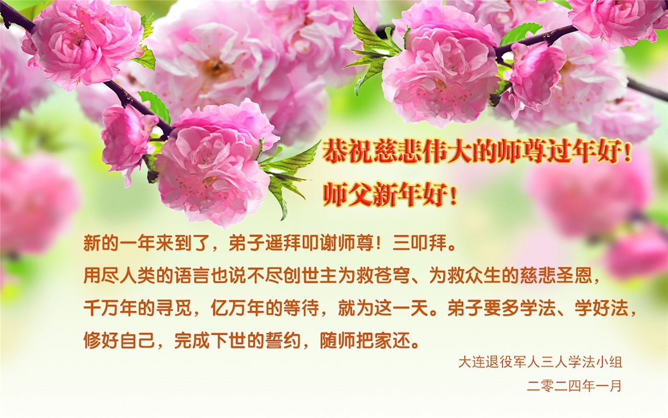师父过年好!您辛苦了,祝您新年快乐!北京大法弟子想念您! 北京军委后保部转业干部大法弟子及家人敬上 解放军总医院退休干部大法弟子及家人敬上 北京军委后保部退休、转业干部敬上 二零二四年一月二十四日 中国大陆军工系统一大法弟子全家人恭祝慈悲伟大的师父过年好!