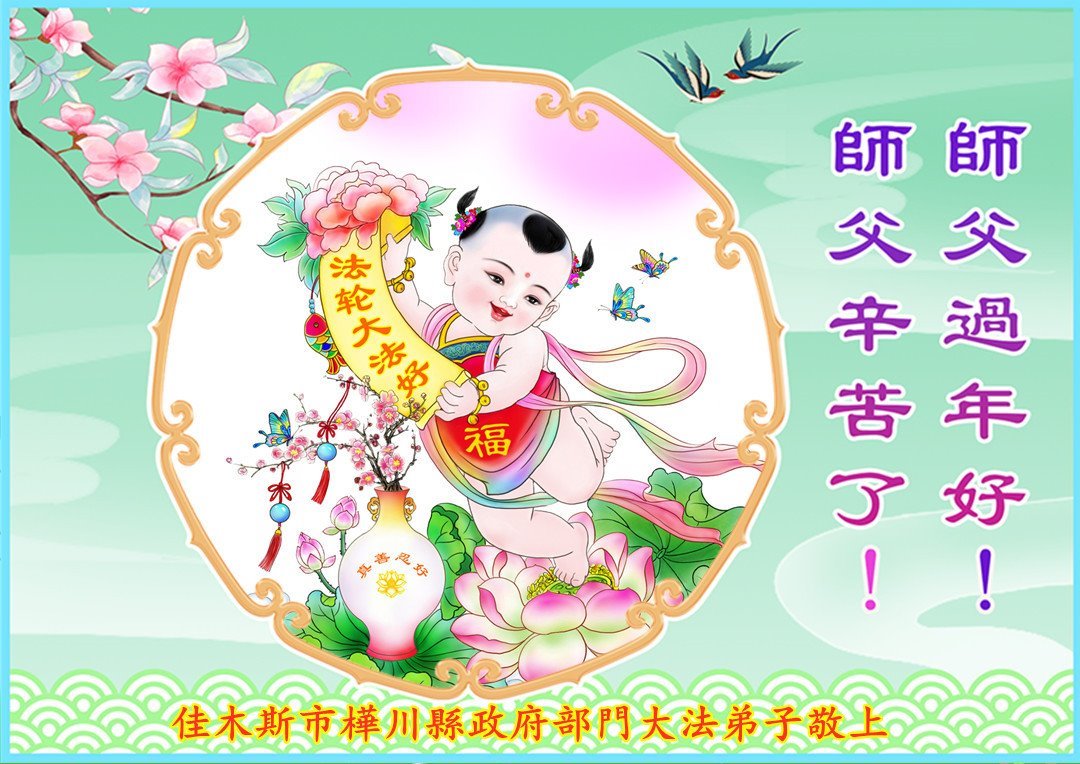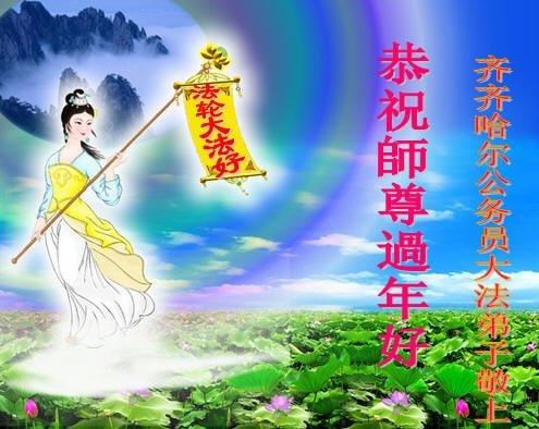 黑龙江省齐齐哈尔市公务员大法弟子感恩师尊慈悲苦度:伟大的师父好!恭祝师尊过年快乐!师父您辛苦了,您为众生操尽了心,弟子谢谢您!弟子一定抓紧修好自己,同化“真、善、忍”大法,争分夺秒多救人。 江苏南京公安系统大法弟子携明真相的亲人恭祝伟大的师父过年快乐!