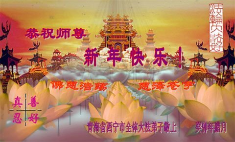 在新的一年里,我们夫妻同修一定听师尊的话,学好法,多救人,让师尊放心。 青海省西宁市大法弟子恭祝慈悲伟大的师尊新年快乐!