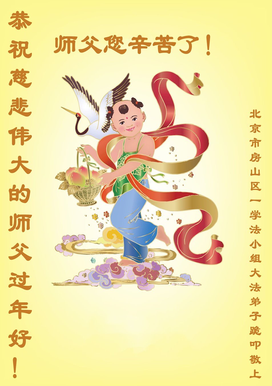 昆明三个学法小组全体大法弟子跪拜师尊,恭祝师尊新年快乐! 师尊辛苦了。感谢师尊救度我们,加持我们,保护我们,使弟子在修炼的路上越来越成熟。用什么语言都表达不尽弟子对师尊的感恩。我们还有很多不足,弟子要在这助师正法的最后时刻学好法,多学法,发好正念,整体配合好,圆容好,修好自己,多救人。听师父的话,新年添正念,圆满随师还。 师父辛苦了!弟子感恩师尊的慈悲救度!弟子叩拜师尊! 北京市房山区一学法小组大法弟子恭祝慈悲伟大的师父过年好!
