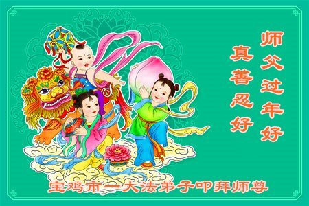 浩瀚大穹天宇,芸芸无量众生,能修炼大法,成为创世主的亲传弟子,我们是最幸运、最荣耀的生命。圣恩浩荡,师恩难报。 修炼中我们知道,现今每一分每一秒都是慈悲伟大的师父天大的承受延续而来,同时也承载着师父急切、巨大的期望。每每想到此,弟子们不禁潸然泪下。 过年了,借小小贺卡,带去我们学法小组四位大法弟子无尽的感恩和思念。跪拜师父!师父过年好! 在新的一年里,我们一定要学好法、悟好法、向内找、真修、实修、严格要求自己,全心全力完成大法弟子的三件事。珍惜时间,在修炼上更要勇猛精進,用更高的标准要求自己,不断向更高境界突破。不负师父的慈悲期盼。 四川成都市两个学法小组大法弟子恭祝师尊新年快乐!