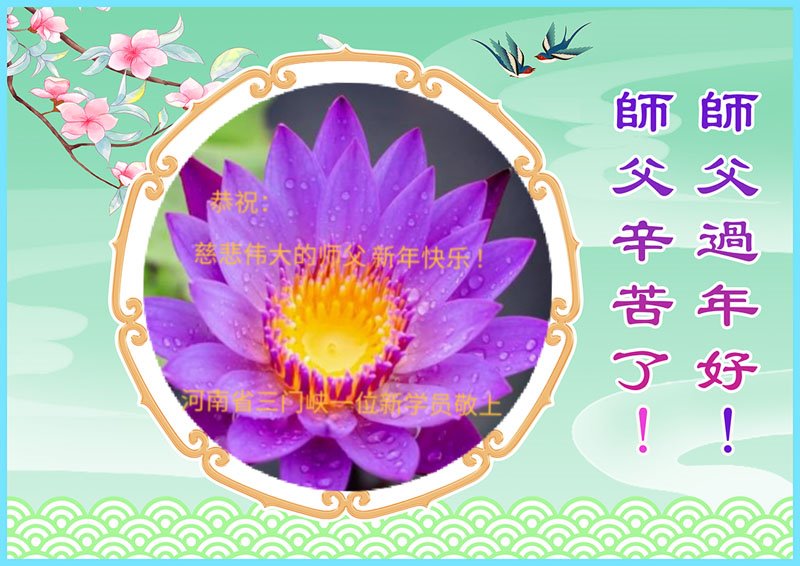 新年将至,春回大地,在这辞旧迎新的日子里,我们大法弟子们无比想念慈悲伟大的师尊,无限感恩师尊洪传真、善、忍宇宙大法,向世界众生揭示宇宙与人类的天机,赐给弟子和世界众生一条回天之路,万古机缘无比珍贵。 癸卯年,我们遵照师尊教诲,修炼、救人,稳健走过;甲辰年,我们当学法更用心,忍苦更精進,慈悲多救人;牢记正法时期大法弟子的神圣使命,度一方世人明白真相,走出劫难,进入新宇! 河南省三门峡一新学员恭祝慈悲伟大的师父新年快乐!