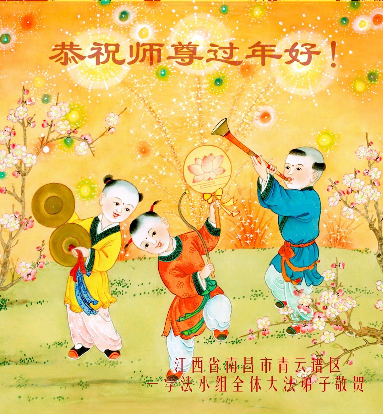 【明慧网二零二四年二月九日】(明慧网记者综合报道)浩瀚苍宇,芸芸众生,在师父亿万年的看护下,才使大法弟子们接上了圣缘,成为师尊的亲传弟子。师父用巨大的付出给众生争取得救的宝贵时间和机缘,身为大法弟子的我们一定不负使命。二零二四年传统大年到来,遍布中国大陆30省、自治区、直辖市的大法弟子们齐拜师尊,恭贺慈悲伟大的师尊过年好! 江西南昌青云普区一学法小组全体大法弟子恭祝师尊过年好!
