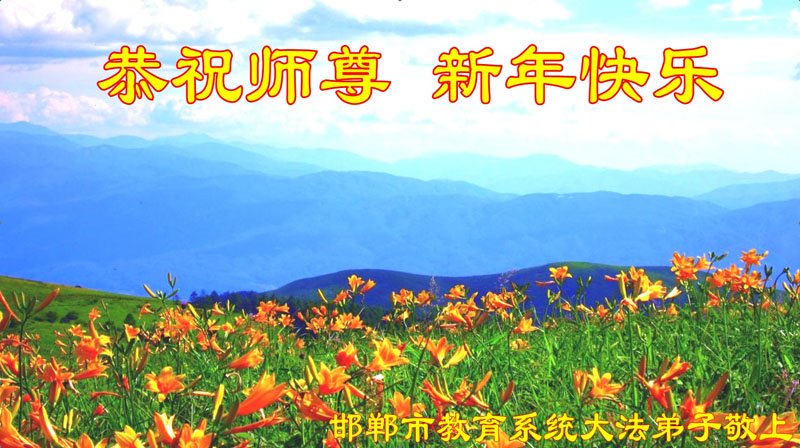 浙江省丽水市大法弟子怀着无比思念和感恩的心,遥拜师尊新年快乐!是师尊把我们从地狱里捞起洗净,传给我们宇宙大法,让我们明白了人生的意义,知道了人生的目的,解脱了名利情的羁绊。弟子无法用人间的语言表达对师尊的感恩!不管今后的路还有多长,不管今后还会遇到什么样的艰难险阻,弟子一定坚定正念,百分之百信师信法,做好三件事,修好自己。不辜负师父的慈悲救度。 河北邯郸市教育系统大法弟子给师父拜年恭祝师尊新年快乐!