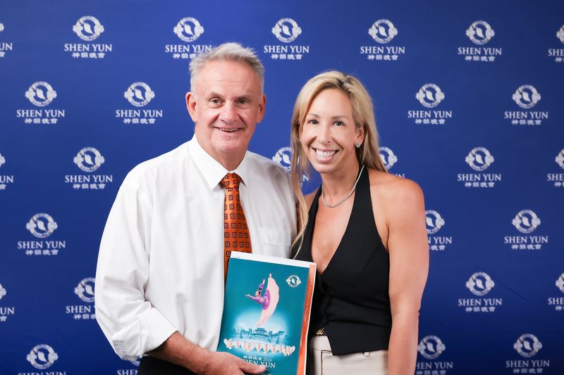 “不管世界上发生了什么,艺术已经成为(展现)历史的通途。因此,神韵是美妙的。”艾美奖电视制作人、主持人丹·威利斯(Dan Willis)观看三月八日,神韵在芝加哥南郊的大学园州长州立大学表演艺术中心演出后赞叹道。 .纪.元;)'> 图9:艾美奖电视制作人、节目主持人丹·威利斯(Dan Willis)和太太琳达·威利斯观赏演出后,都表示他们内心极为震撼 。(大.纪.元;) |