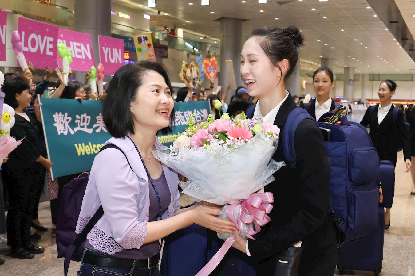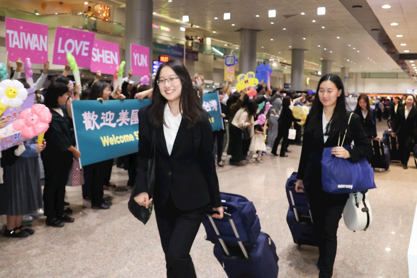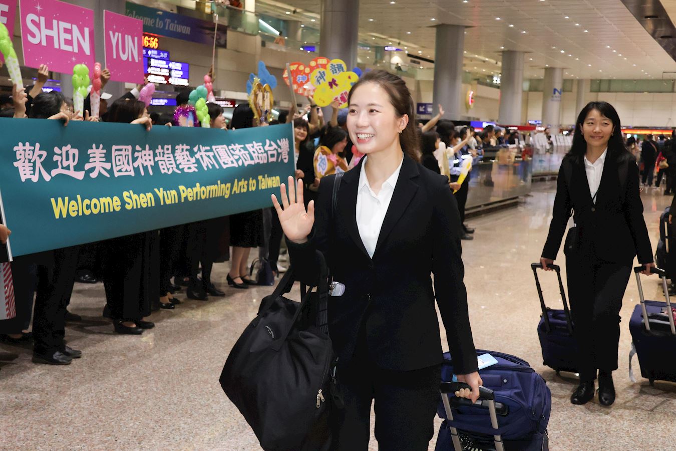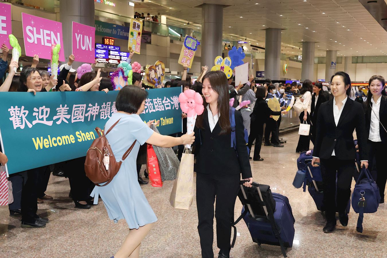【明慧网二零二四年三月二十五日】(明慧记者孙柏、苏容综合报导)美国神韵纽约艺术团结束澳洲的演出,三月二十四日下午五点多飞抵台湾桃园机场,当神韵艺术家走出机场迎宾大厅时,粉丝们响起热烈的掌声与欢呼声,并上前给艺术家献上气球和鲜花。 图1:二零二四年三月二十四日,神韵纽约艺术团抵达台湾桃园机场,将在台湾六大城市展开二十八场演出。 |