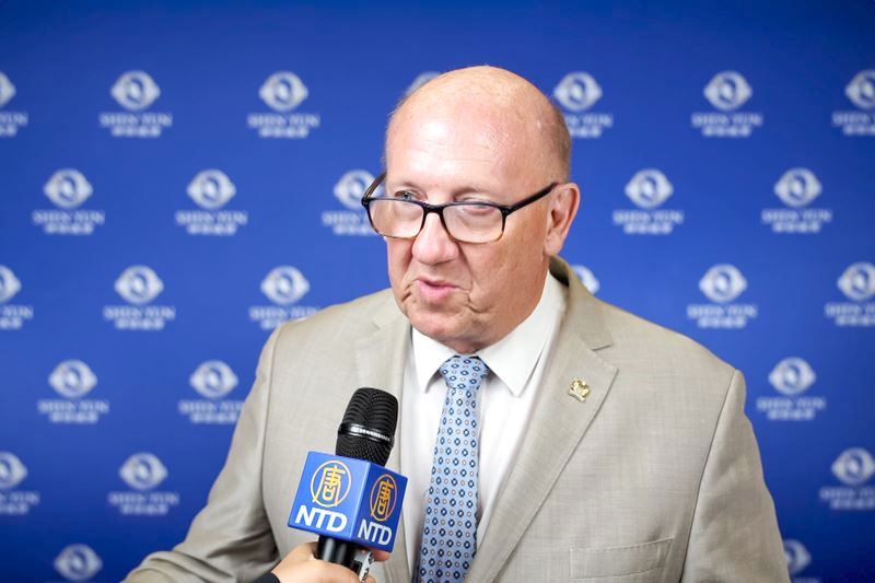 詹博里(Jamboree)市议员色拉·赫顿(Sarah Hutton)观看演出后说:“演出精妙绝伦,震撼人心,不仅是因为舞蹈高超以及对传统中国文化的展现,更是因为演出所讲述的故事震撼人心。我被深深震动,真是令人赞叹。” 演出揭露了中共活摘器官的恶行,赫顿议员赞扬神韵的勇气,并相信这将激发观众的思考和热议。她说:“据我观察,很多人并不清楚目前中国发生的事情。这是一个令人胆寒的现实。现在都是二零二四年了,但许多事情还是被隐瞒着,很少有人敢于谈论这些内容,但我认为今晚在舞台上讲述的故事将会激发观众的热议。” 她表示:“那是个令人震撼的故事,有关法轮功的修炼传统。(修炼)不仅仅是一种生活方式,更是相信神佛的存在,相信未来,相信希望。” !唐!人:电视台)'> 图13:二零二四年二月二十六日,在澳洲布里斯本昆士兰表演艺术中心音乐厅(Concert Hall,QPAC),布里斯本市议员查尔斯·斯特伦克(Charles Strunk)观看了神韵纽约艺术团在当地的首场演出。(新!唐!人:电视台) |