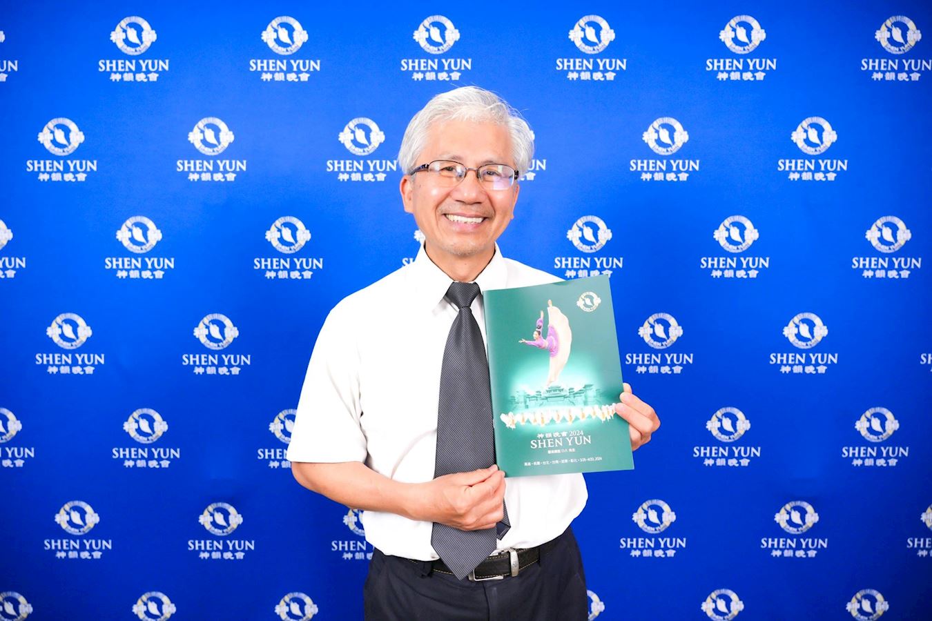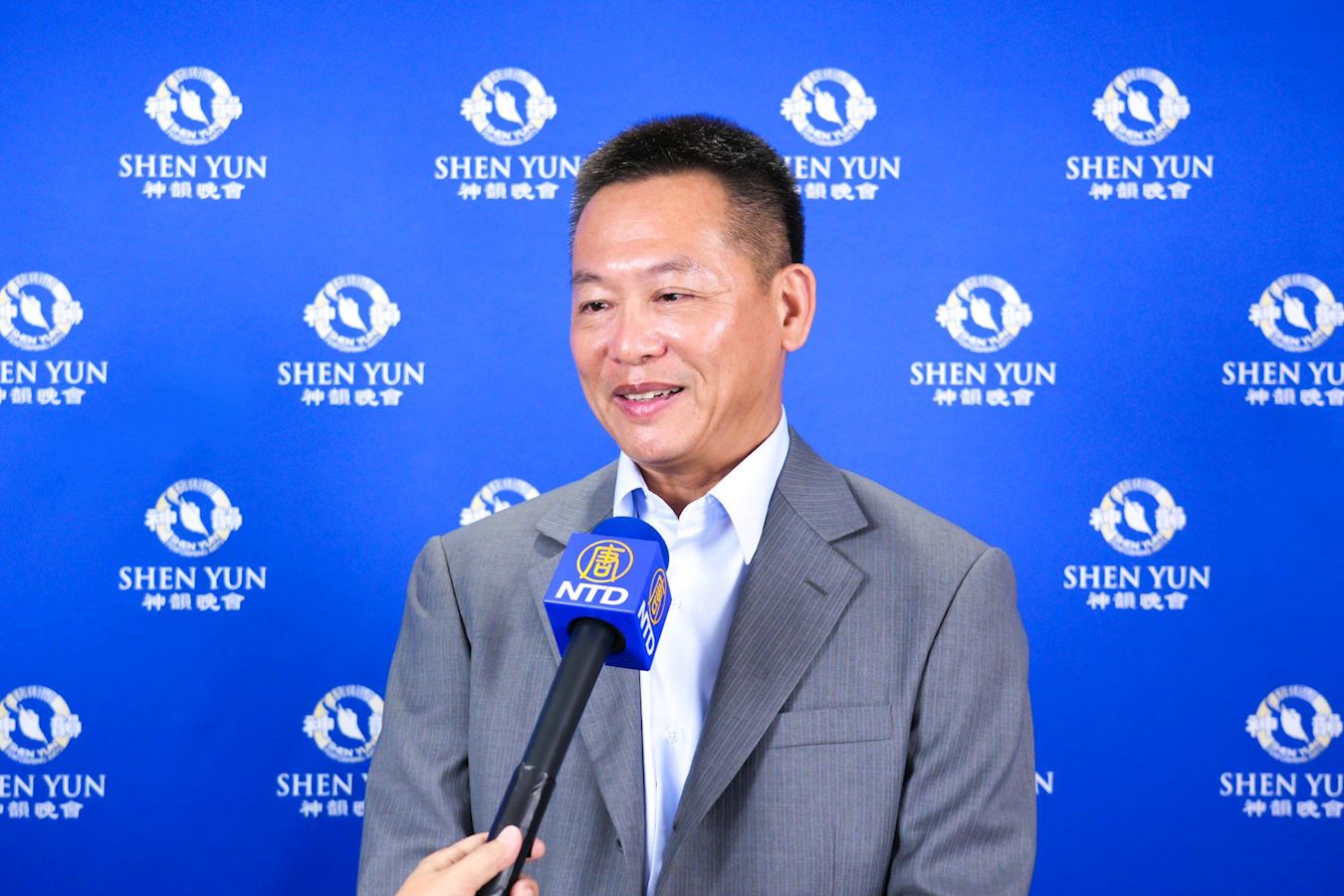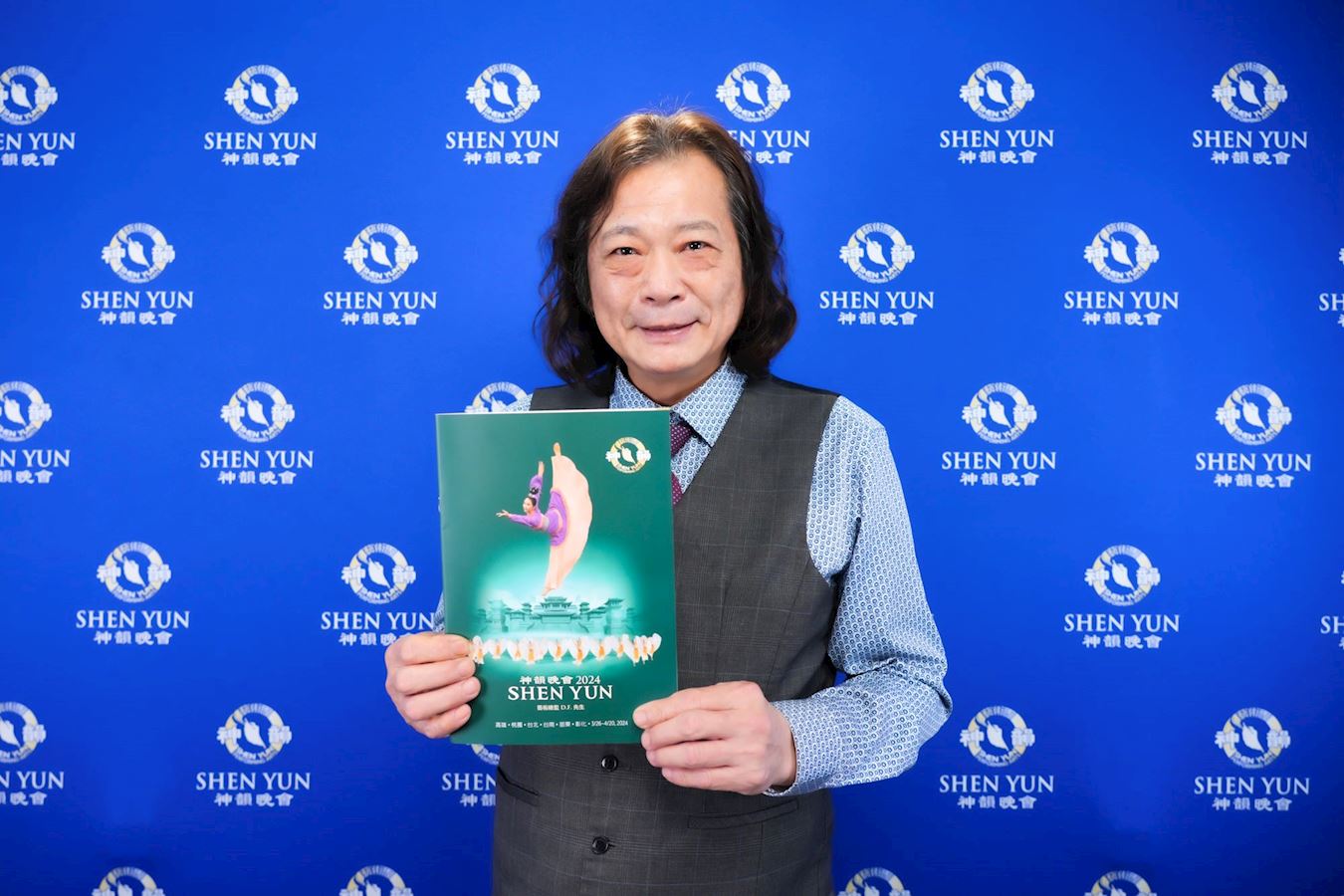 电机技师事务所所长沈岱范观赏后称赞,神韵美得叫人感动,“神韵是人体美与力的展现。舞蹈动作很美,还有很多很有活力的动作,完全超乎我的想象。” 观赏神韵小舞剧,沈岱范表示,“每一出剧都很感动人,都是美的感受。”他说:“我印象最深刻的是,从动态天幕到实体舞台,场景转换非常灵活,那虚实紧密结合,效果真的很棒,想象空间就更开阔了。”他赞美:“他们得在简短的剧情中抓到那个‘神韵’,把她表现出来,每一个环节都很经典。” 其中,《大圆满》让他深受感动,他形容当大法轮转动时,“满震撼的,我感觉有一种力量,可以把人间不好的全部扫尽,让人间恢复祥和,还有平安。”他还说:“这是一种正大光明的圆满的力量——大圆满!我感受到神佛慈悲的力量,有一股力量直冲过来,我感受到能量一直出来。” “希望未来神韵能够回到大陆演出,回去净化大陆的人心,我觉得是功德无量!”沈岱范表示,“(神韵)要能回到中国大陆,便能把那个已经被赤化了的、已经变成很乱很脏的一个环境,重新让她澄清,就像一颗明珠投入浑水里面,能够让她澄清、净化。神韵可以扮演这样的一种力量。” 神韵纽约艺术团接下来前往韩国高阳、龟尾市、庆州、大邱等四座城市,从四月二十四日至五月十一日,进行十四场的演出,若想了解更多相关讯息,请查看神韵官方网站 www.shenyun.org。
