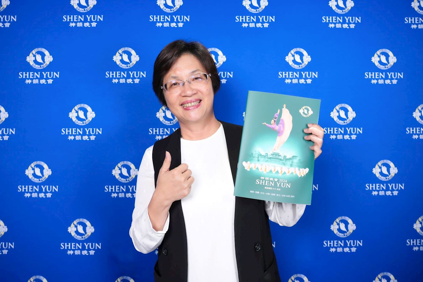 “华人有这样的艺术团,真的是太棒了。”神韵的节目,让玻璃工艺公司负责人、玻璃艺术家林瑶农相当感动,看得热泪盈眶,林瑶农用数不尽的感动来形容自己看神韵的体验,“演到我心坎里,令我感动落泪。” 林瑶农赞美:“神韵的宗旨是弘扬中华文化,但现在已经很少有这样子表现中华文化的舞蹈演出了,我不知道怎么形容神韵的好,就是觉得很感动。” 林瑶农是融贯中西技法展现台湾特色的玻璃工艺家,多次拿下各项国际大奖。他被神韵的颜色震撼,“神韵把颜色配合得很好,把水青、橘红、桃红等颜色的渐层次做出来,有点像渲染的那种颜色,感觉非常中国风,让我很震撼。” 林瑶农表示,“舞蹈演员的服装颜色非常鲜艳,汉服能表现得这么漂亮,我真的想象不到,神韵做到了。”“舞蹈动作很轻柔,我很喜欢。” “其实我们中国有很多古典的文学,我可以往这方面来发展创作,这对我就是一种启发。”神韵的艺术呈现丰富,给林瑶农在创作上带来启发。 艺术与设计学系教授:神韵是色彩鉴赏的活字典 .纪.元;)'> 图8:四月十四日下午,清华大学艺术与设计学系兼任教授吕燕卿观看了神韵纽约艺术团在苗北艺文中心的第三场演出。(大.纪.元;) |