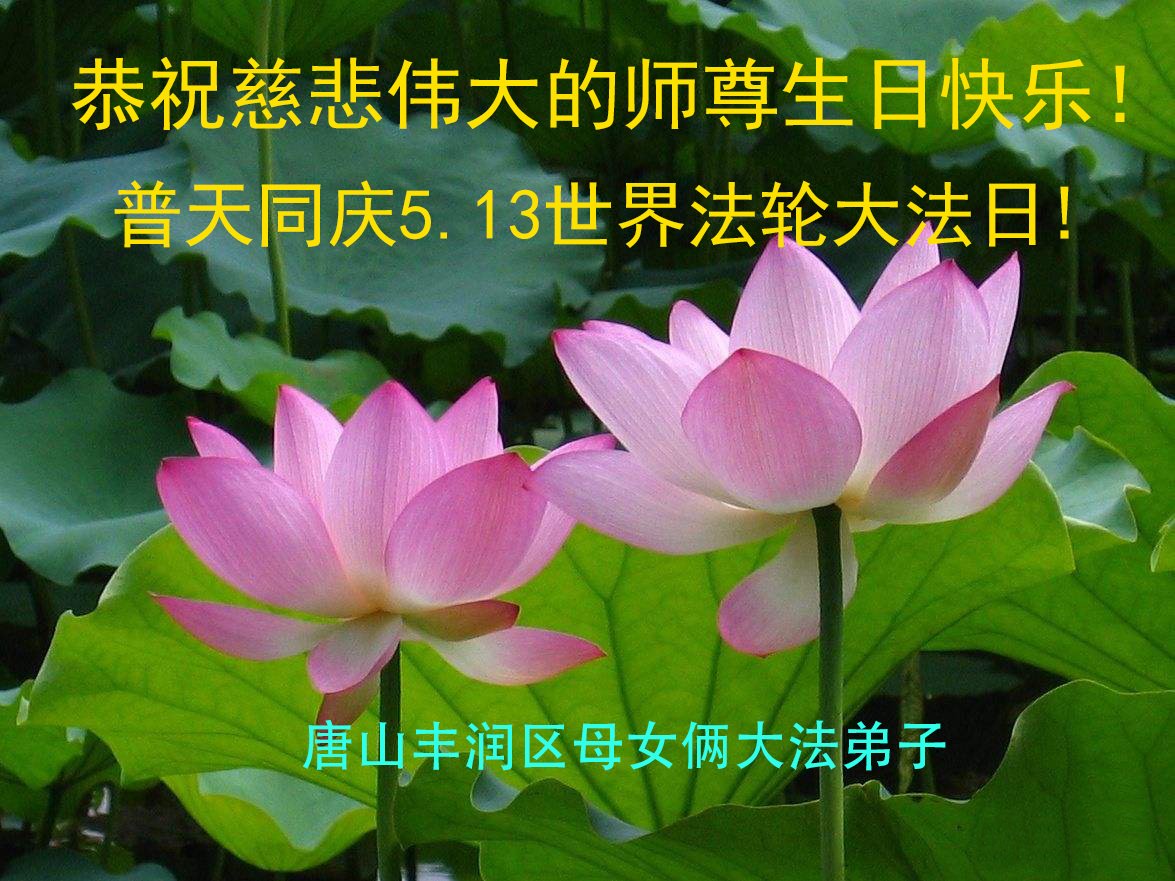 慈悲伟大的师尊您好!您辛苦了! 在世界法轮大法日来临之际,在这普天同庆、同贺、同祝的喜庆日子里弟子恭祝慈悲伟大的师尊生日快乐! 跪拜师尊!合十 河北唐山丰润母女俩大法弟子敬上 二零二四年四月二十六日 河北省唐山市丰南区大法弟子敬贺世界法轮大法日!