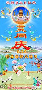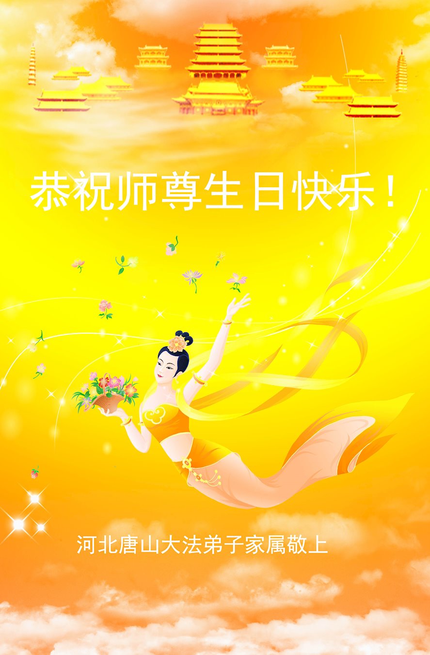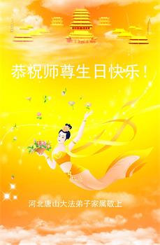 师尊您好!感谢师尊慈悲救度,让我们走上返本归真之路!弟子们会兑现史前大愿,圆满随师还。 河北省唐山市丰润区大法弟子一家恭祝伟大师尊生日快乐!祝贺世界法轮大法日!