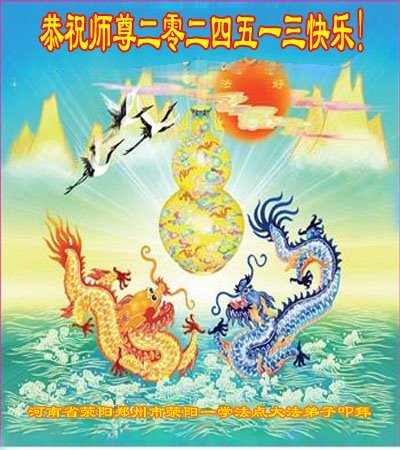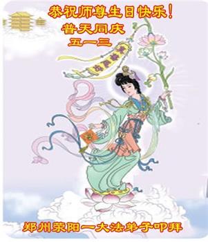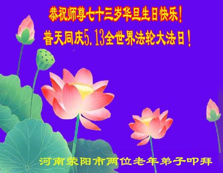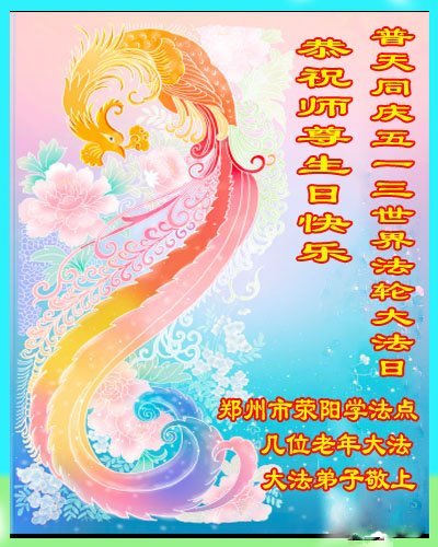恭贺世界法轮大法日! 河南省郑州市一大法弟子全家敬上 河南省郑州荥阳市老俩口大法弟子恭祝师尊生日快乐!
