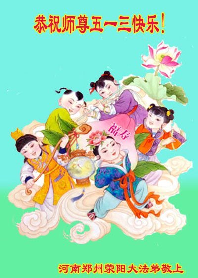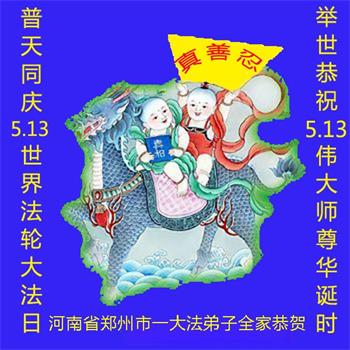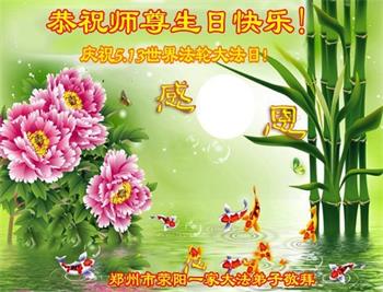 河南省郑州市一大法弟子全家恭贺世界法轮大法日!