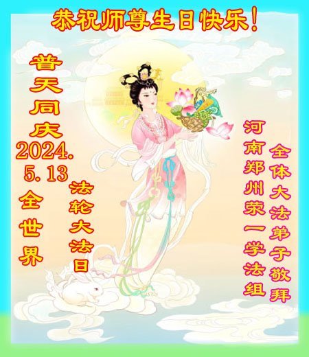 恭祝师尊2024年生日快乐!庆祝2024年5.13世界法轮大法日! 郑州市荥阳一学法点大法弟子敬上 2024年4月14日 河南省郑州市荥阳市一位大法弟子庆祝2024年5.13世界法轮大法日!