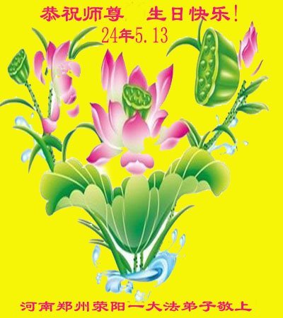 恭祝师尊2024年生日快乐! 郑州荥阳一位大法弟子叩拜 2024年4月14日 河南郑州荥阳一大法弟子庆祝2024年5.13世界法轮大法日!