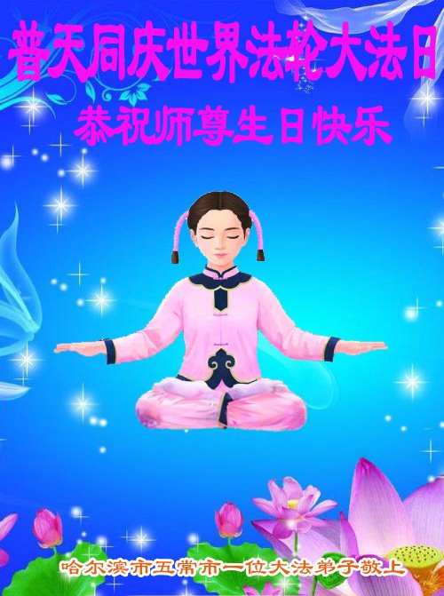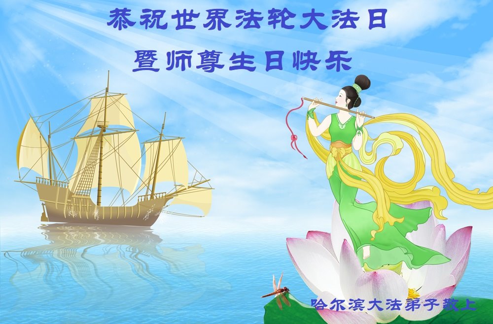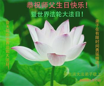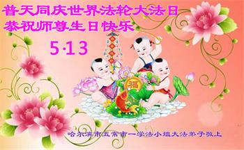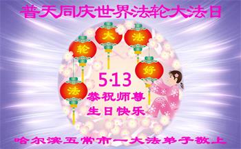 黑龙江省哈尔滨大法弟子恭祝世界法轮大法日暨师尊生日快乐!