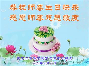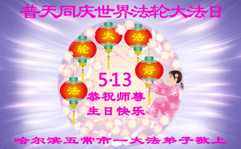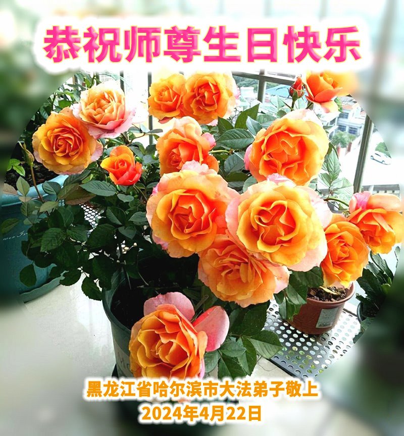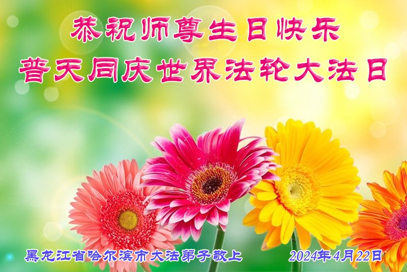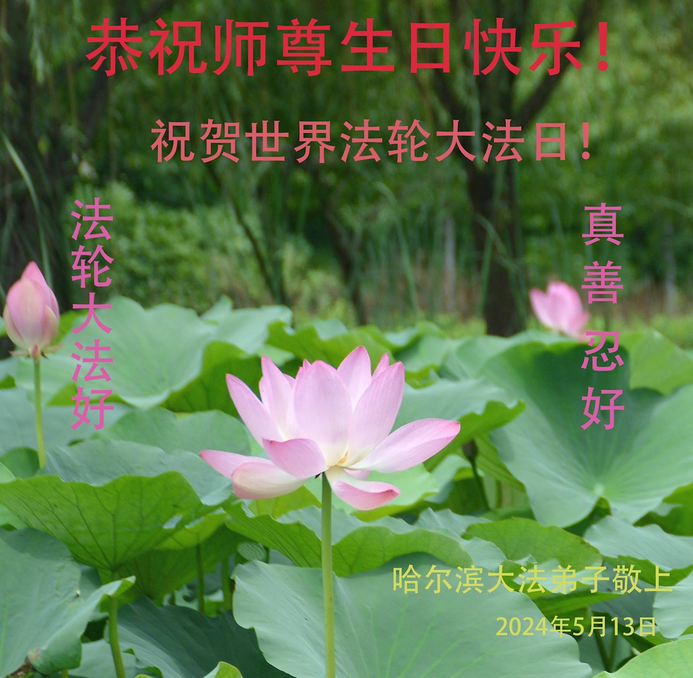 【明慧网二零二四年五月十一日】 黑龙江省哈尔滨市大法弟子恭祝师尊生日快乐!普天同庆世界法轮大法日!
