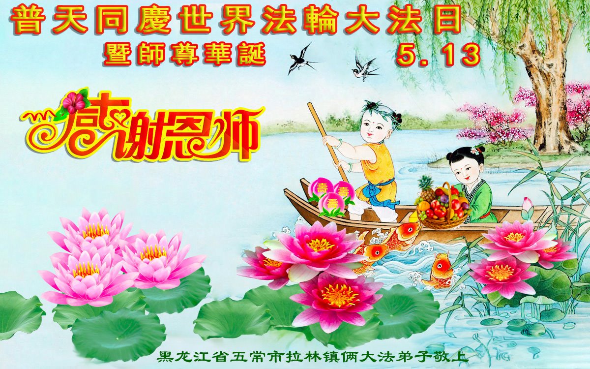 普天同庆世界法轮大法日!恭祝慈悲伟大师尊生日快乐! 黑龙江省哈尔滨市五常市拉林镇俩大法弟子敬上 黑龙江省哈尔滨市五常市拉林镇一大法弟子恭祝师尊生日快乐!