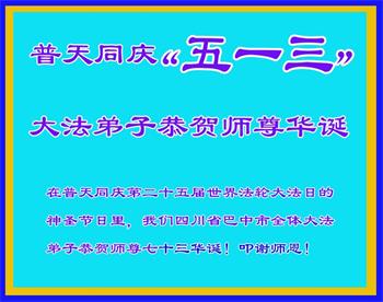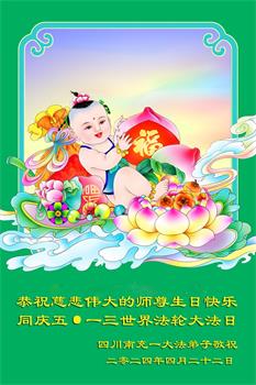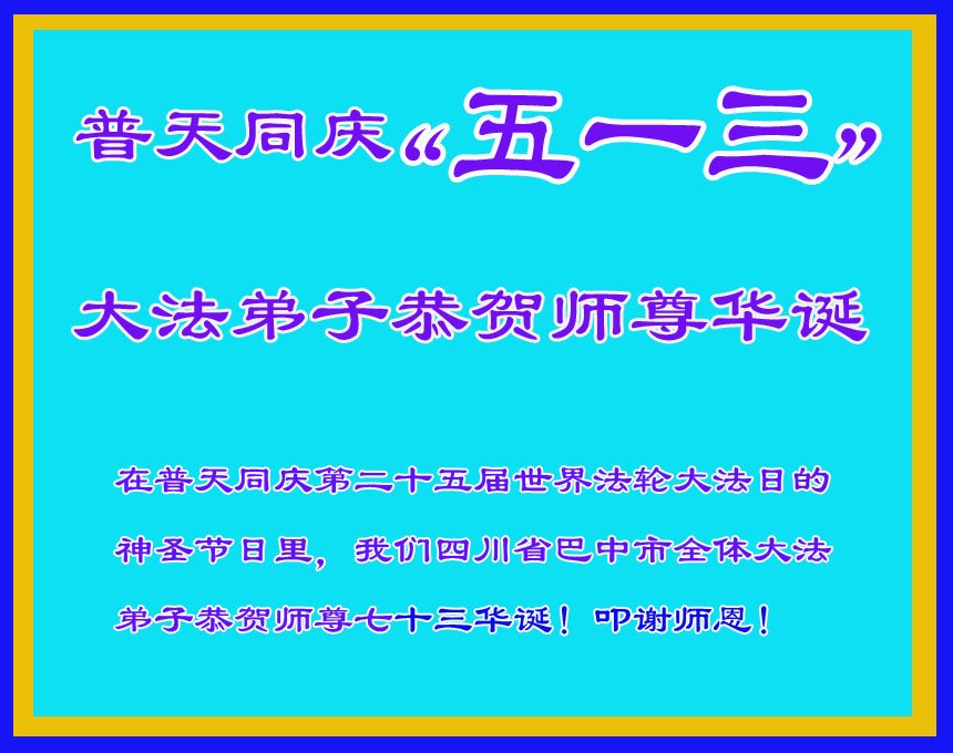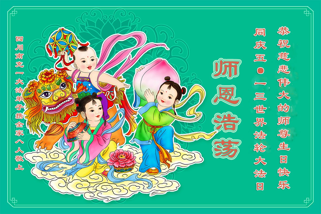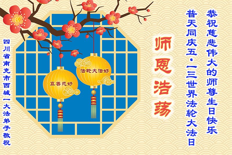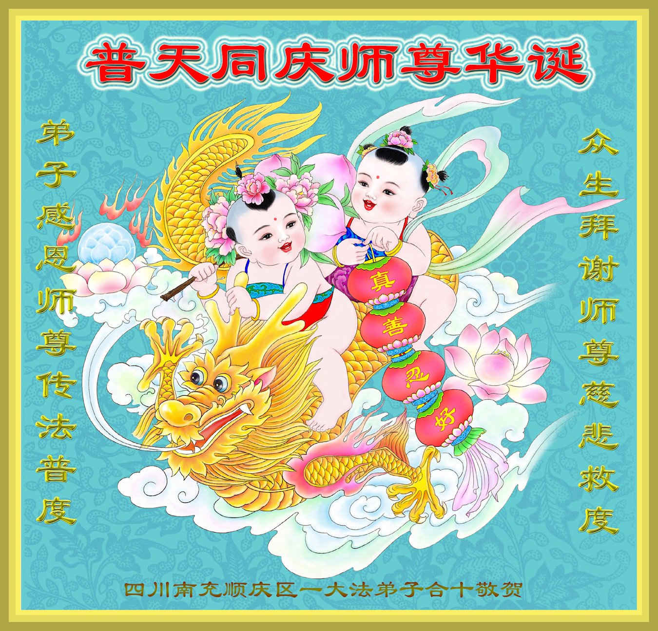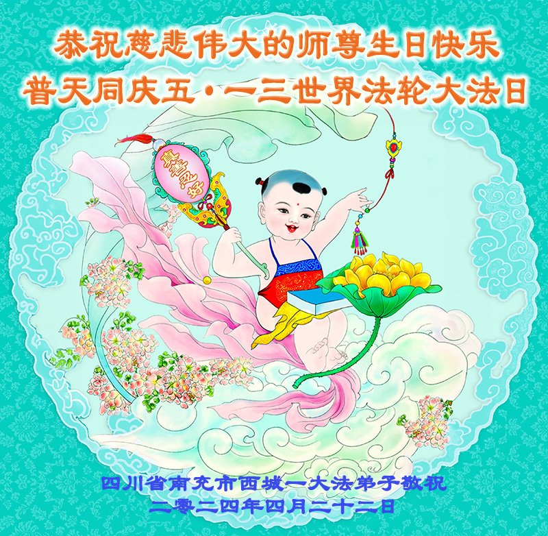 四川南充一大法弟子恭祝慈悲伟大的师尊生日快乐!普天同庆世界法轮大法日!