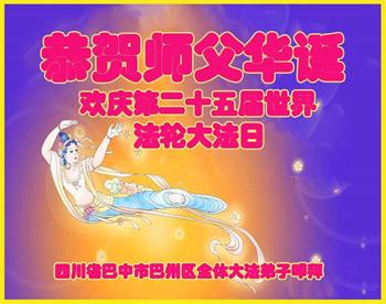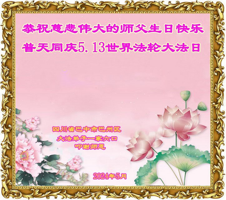 【明慧网二零二四年五月十一日】 四川省巴中市巴州区全体大法弟子恭祝师尊生日快乐!庆祝第二十五届世界法轮大法日!