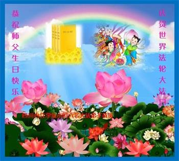 在普天同庆第二十五届世界法轮大法日的神圣节日里,我们四川省巴中市全体大法弟子恭祝师尊七十三华诞!叩谢师恩! 四川内江学法小组六名大法弟子恭祝师父生日快乐!庆贺世界法轮大法日!