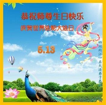 四川内江一名大法弟子恭祝师尊生日快乐!庆贺世界法轮大法日!
