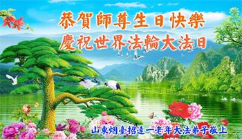 山东省烟台市福山区一学法小组大法弟子恭祝师父生日快乐!