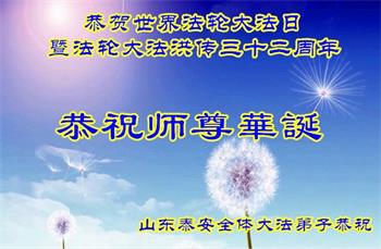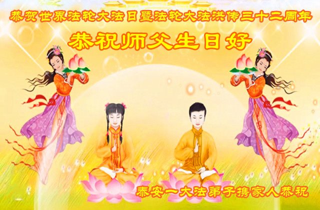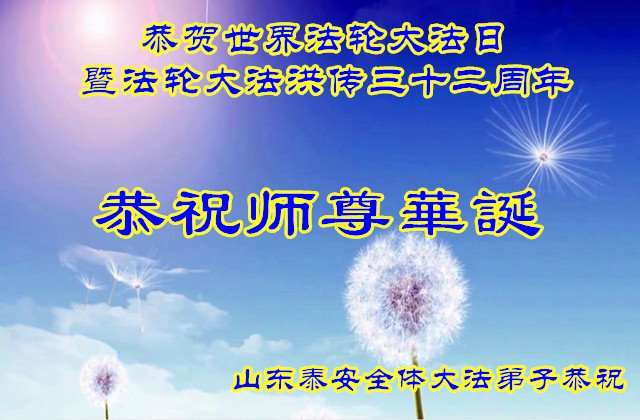 山东泰安全体大法弟子恭祝师尊华诞!恭贺世界法轮大法日暨法轮大法洪传三十二周年!