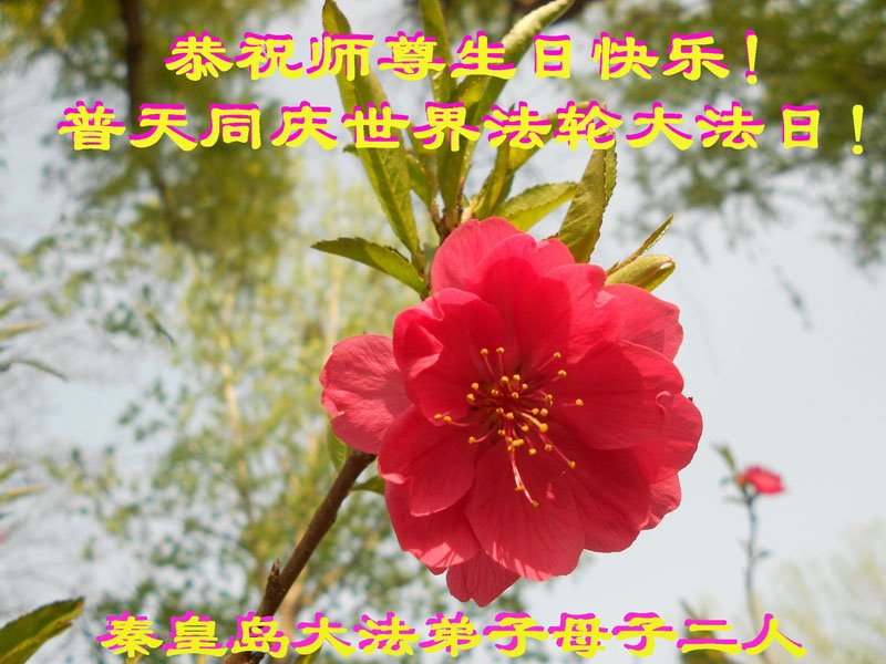 恭祝师尊生日快乐!普天同庆世界法轮大法日! 河北省秦皇岛市一学法小组敬上 二零二四年四月十二日 河北省秦皇岛大法弟子母子二人恭祝师尊生日快乐!