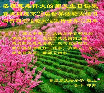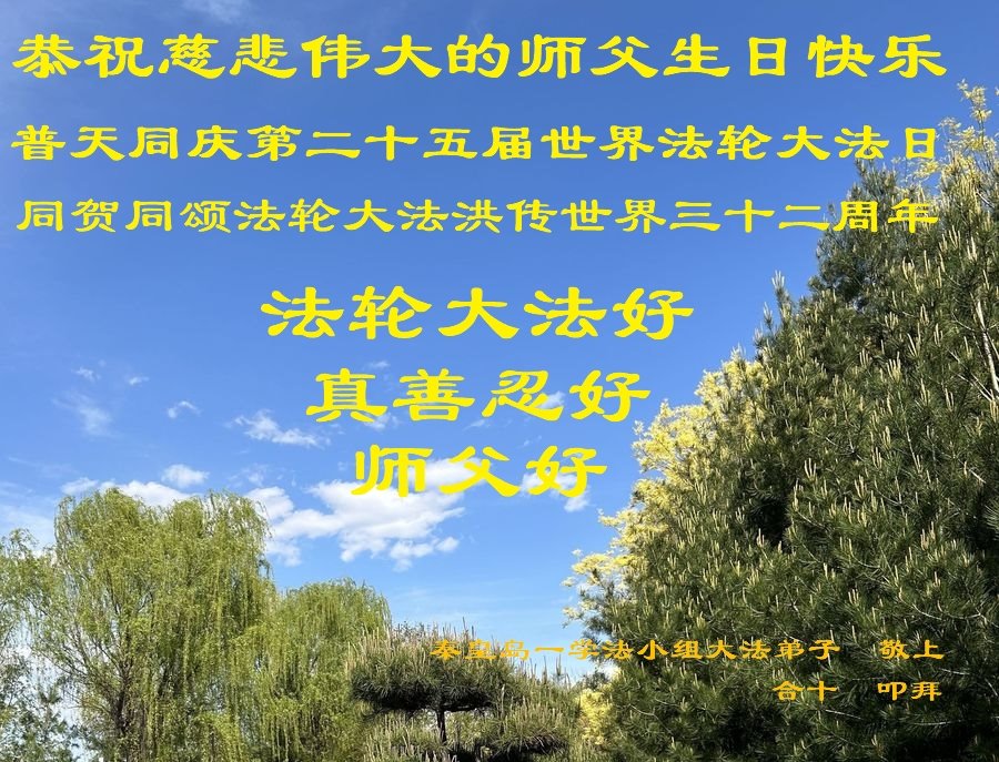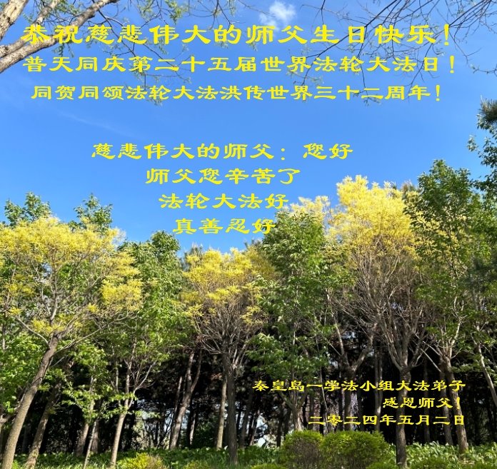 【明慧网二零二四年五月十一日】 河北省秦皇岛地区大法弟子恭祝师尊生日快乐!普天同庆世界法轮大法日!