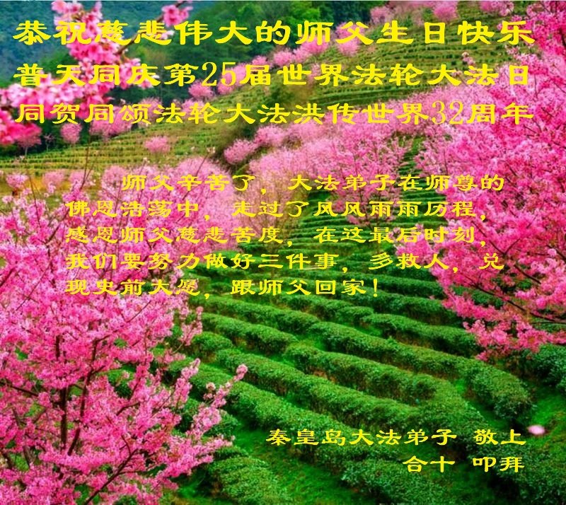 河北省秦皇岛大法弟子恭祝师父生日快乐!普天同庆世界法轮大法日!