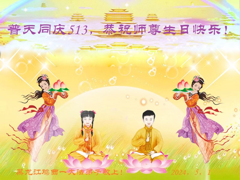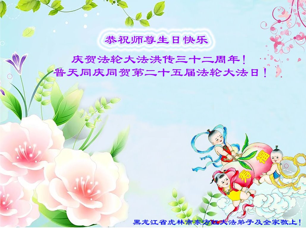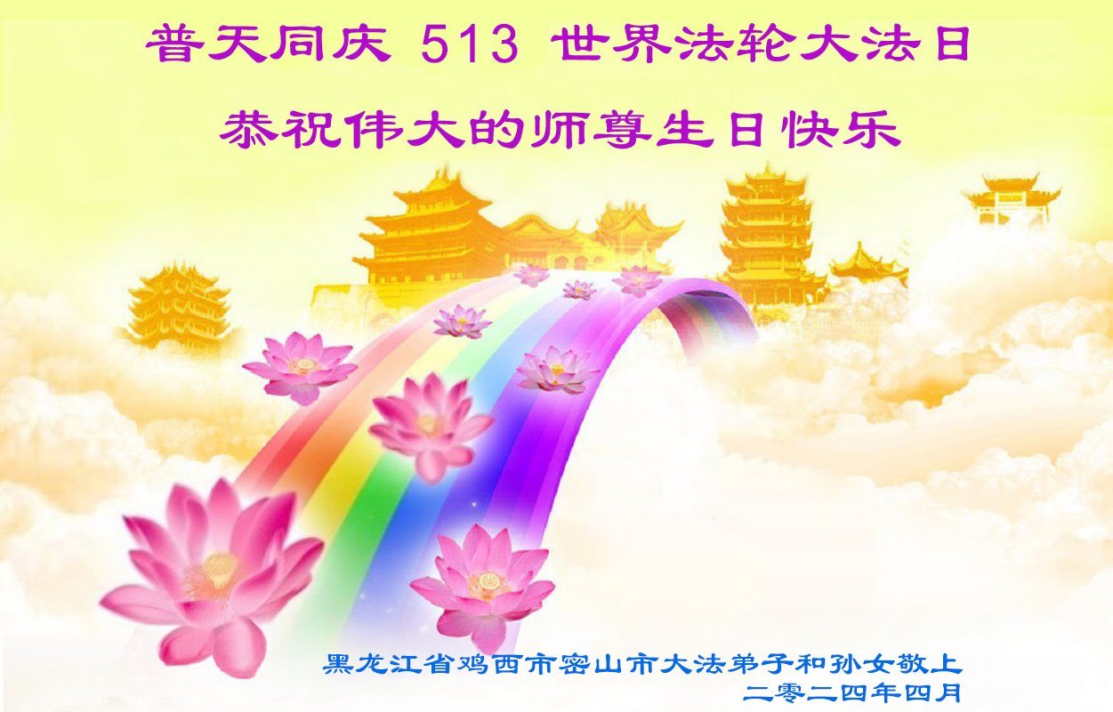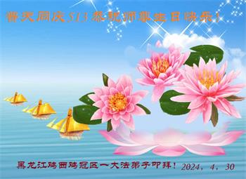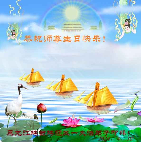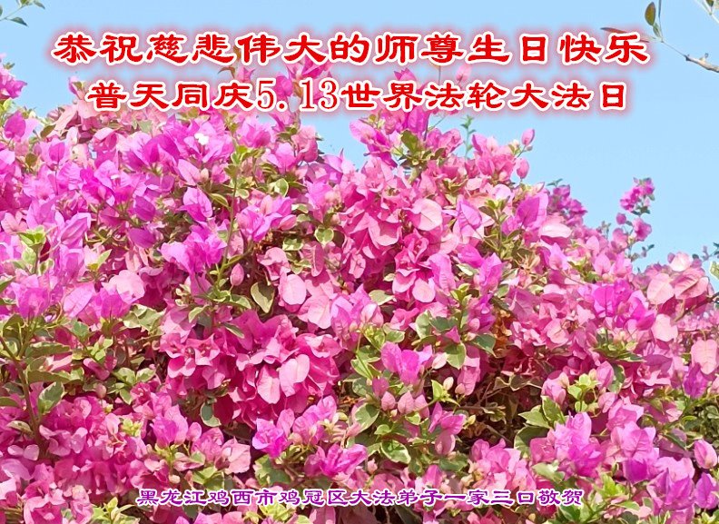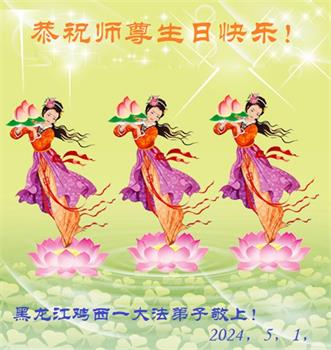 【明慧网二零二四年五月十一日】 黑龙江省鸡西市虎林市东方红大法弟子及全家恭祝师尊生日快乐!庆贺法轮大法洪传三十二周年!