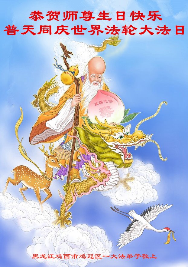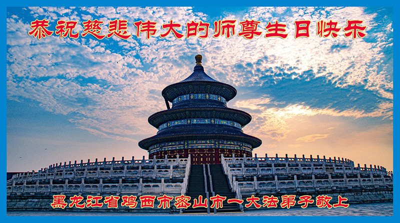 黑龙江鸡西市鸡冠区一大法弟子恭祝师尊生日快乐!庆祝世界法轮大法日!