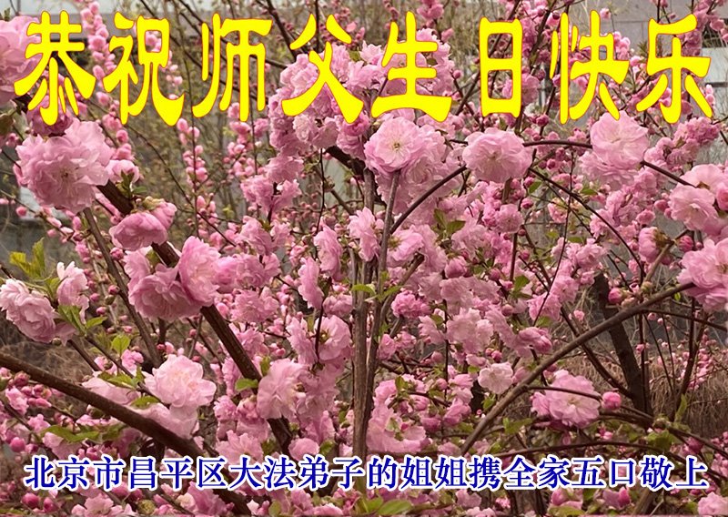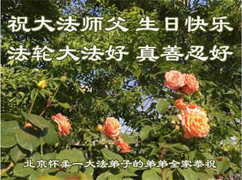 恭祝师父生日快乐! 法轮大法好,真善忍好! 北京怀柔一大法弟子敬上 二零二四年五月三日 北京怀柔一大法弟子的弟弟全家恭祝师父生日快乐!