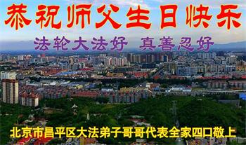 北京昌平大法弟子哥哥代表全家四口恭祝师父生日快乐!谢谢师父!
