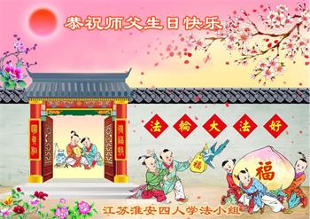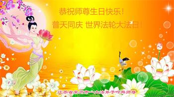 江苏省盐城市阜宁县大法弟子恭贺世界法轮大法日!恭祝师父生日快乐!