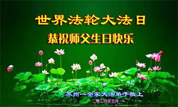 江苏苏州一大法弟子全家恭祝师父生日快乐!