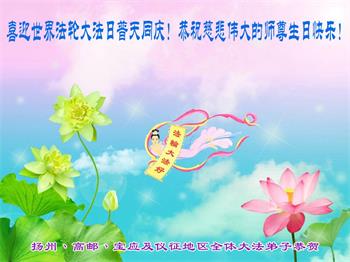 江苏省扬州、高邮、宝应及仪征地区全体大法弟子恭祝慈悲伟大的师尊生日快乐!喜迎世界法轮大法日!