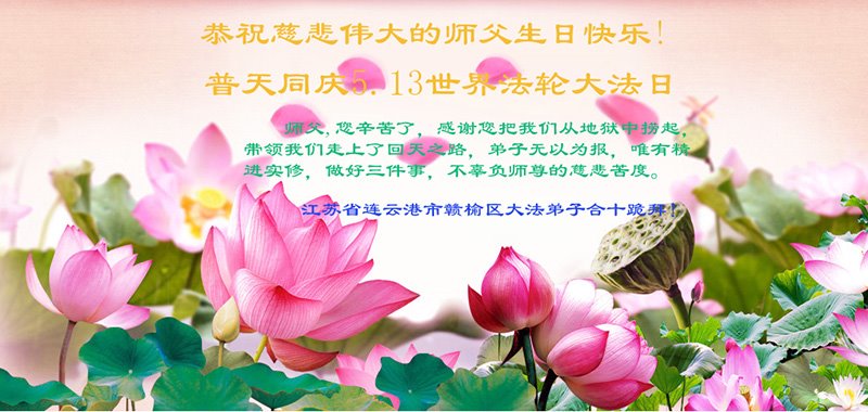 江苏省连云港市赣榆区大法弟子恭贺世界法轮大法日暨师尊华诞!