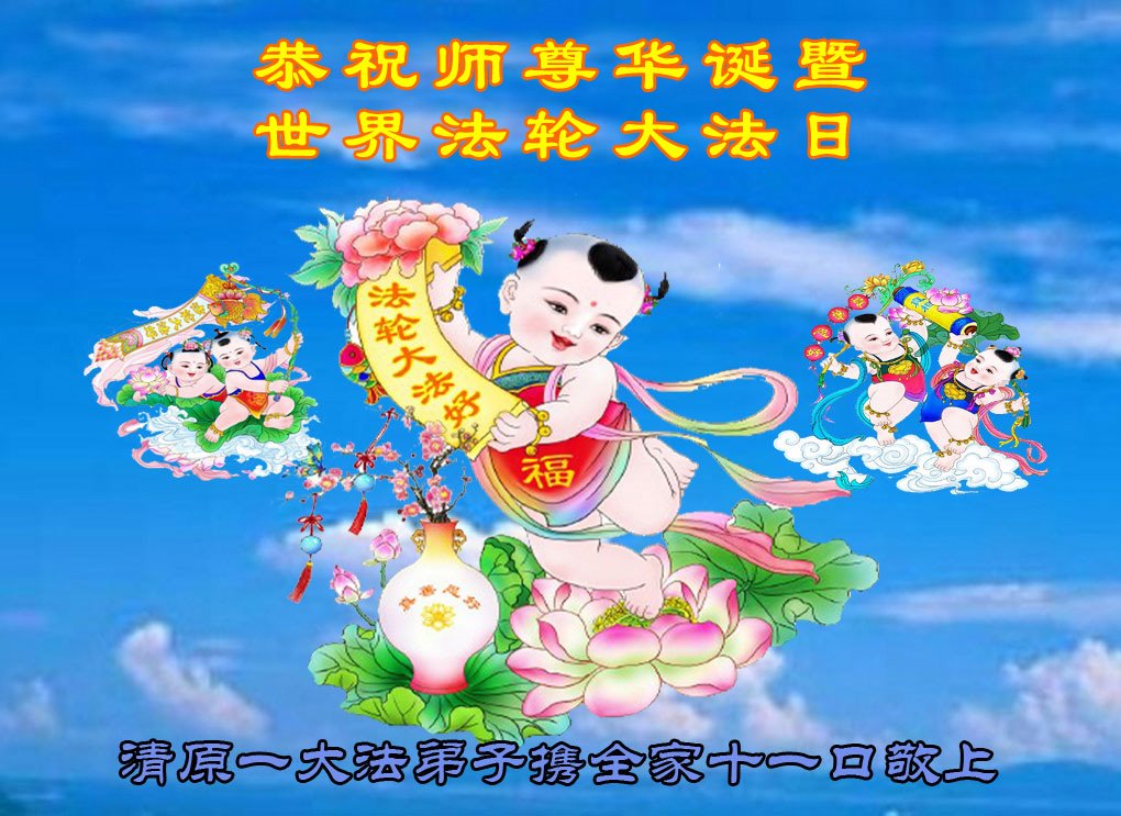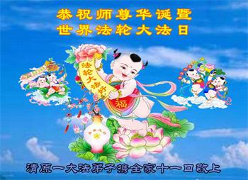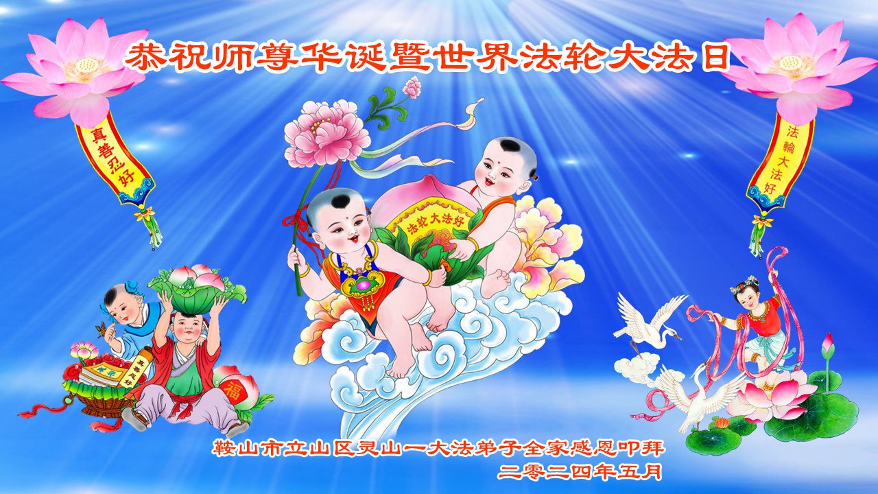 【明慧网二零二四年五月十一日】 辽宁省鞍山市立山区灵山一大法弟子全家恭祝师父华诞!恭贺世界法轮大法日!