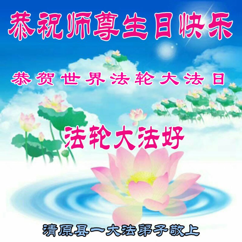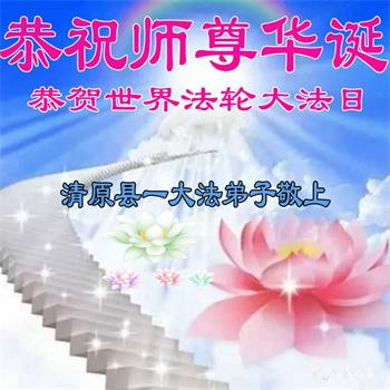 慈悲伟大的师尊好!师尊您辛苦了! 在世界法轮大法日暨师尊华诞到来之际,您对弟子的看护,也无法表达大法弟子对师尊的无尽感恩。我们要更加清醒、理智的走好修炼的路,多学法,学好法,向内修自己,努力做好三件事,救度更多的众生,决不辜负师尊的慈悲苦度和众生的殷切期盼,不负正法时期大法弟子的光荣称号,兑现自己的史前大愿!让师尊多一份欣慰,少一份操劳!师父您对我们的恩我无法用语言来表达,只能精進再精進。谢谢师父慈悲苦度! 辽宁省抚顺市望花区全体大法弟子叩拜 辽宁省抚顺市清原县一大法弟子恭祝师尊华诞暨世界法轮大法日!