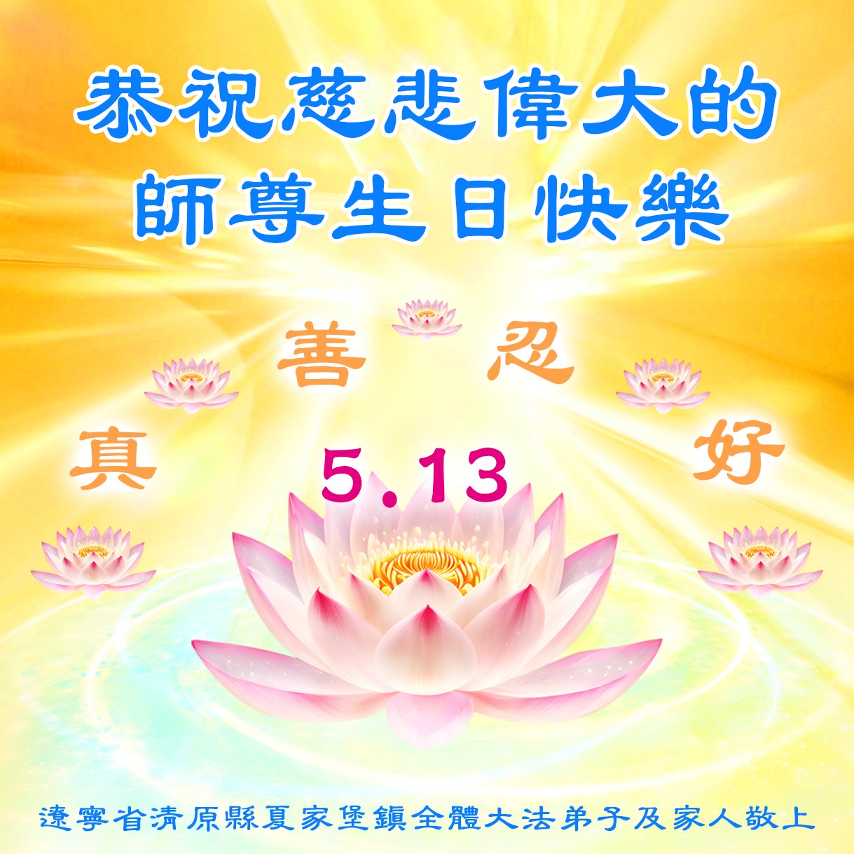 恭祝慈悲伟大的师尊生日快乐!恭贺世界法轮大法日! 辽宁省清原县夏家堡镇全体大法弟子及家人叩拜 辽宁省抚顺市新宾县大法弟子恭祝慈悲伟大的师尊生日快乐!