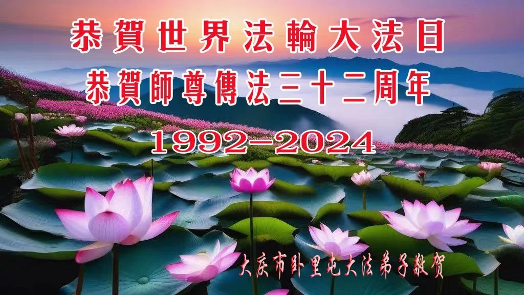 黑龙江省大庆市卧里屯大法弟子恭贺世界法轮大法日!恭祝师尊传法三十二周年!