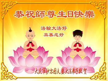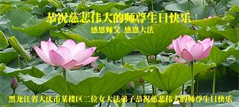 【明慧网二零二四年五月十二日】 黑龙江省大庆市某楼区二位女大法弟子恭祝慈悲伟大的师尊生日快乐!